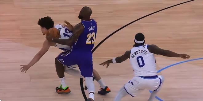 詹姆斯在持球时被克莱顿从后面直接撞击了詹姆斯的左膝盖,这是一个结结实实的撞击,詹姆斯瞬间痛苦倒地。