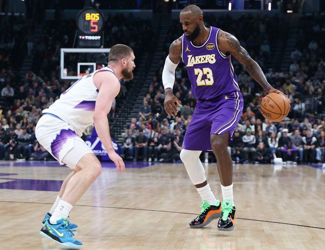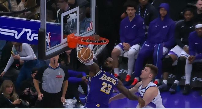 末节开场詹姆斯连拿4分帮助湖人反超,随后詹姆斯被换休休息,詹姆斯登场就助攻东契奇三分命中打停爵士,湖人领先12分到被爵士缩小到4分只用了三分钟,但八寸垒两罚全中,老詹两罚全中再度拉开,随后比赛走向完结。